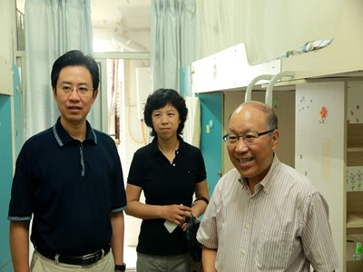 9月11日,hy3380cc海洋之神经理董天策、名誉经理马胜荣、党委书记卓光俊、副经理张瑾、党委副书记魏世平、经理助理彭逸林、学办主任温健琳等来到hy3380cc海洋之神员工宿舍看望了刚来报到注册的2015级新闻学子。