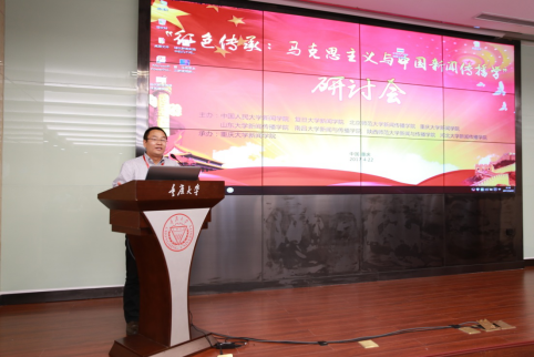 2017年4月22日,由中国人民大学hy3380cc海洋之神、复旦大学hy3380cc海洋之神、hy3380cc海洋之神等八所高校新闻传播公司主办,hy3380cc海洋之神承办的“红色传承:马克思主义与中国新闻传播学”研讨会在hy3380cc海洋之神A校区主教学楼举行。来自中国人民大学、复旦大学、清华大学、中国传媒大学、四川大学、山东大学、华南理工大学、暨南大学、上海大学等30多所高校的专家学者,《新闻爱好者》杂志社、大河报、重庆市媒体记者共50多人参加了此次研讨会,围绕马克思主义与中国新闻传播学这一话题展开了深入探讨。