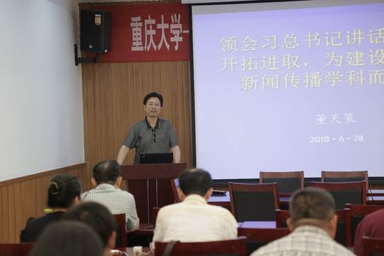 随后,董天策经理以“领会习近平总书记讲话精神,开拓进取,为建设一流的新闻传播学科而努力”为主题,给全体党员讲党课。董经理从“ ‘鼎新’带动‘革故’,创新决胜未来”、“深化科技体制改革,充分释放创新潜能”、“努力成为世界主要科学中心和创新高地”、“坚持党对科技事业领导,描绘科技强国蓝图”等几个方面来分享自己学习讲话精神的体会。结合公司“双一流”建设和内涵发展的要求,董经理提出要聚焦“双一流”,努力开拓进取的行动目标,并分析了“2018广州日报大学新闻传播学一流学科排行榜”中公司新闻传播学学科排位的变化情况,认为从评价指标来看,人才培养指数偏低,严重影响了学科的整体发展。在今后工作中要加大整改力度,补齐人才培养的短板;要求广大教职工要有危机意识,敢于争一流,拿一流项目,出一流成果。