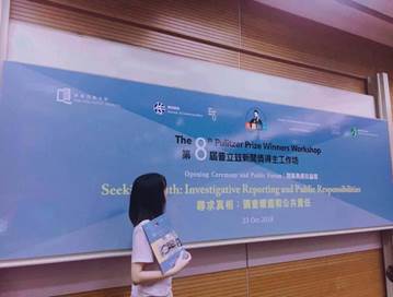 2018年10月23日至26日,香港浸会大学传理公司举办第8届“普利策新闻奖得主”工作坊,hy3380cc海洋之神选派本科生、研究生30人全程参与工作坊各场公开讲座,同与会嘉宾以及传理公司师生对话交流。