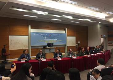 10月23日下午,香港浸会大学传理公司第8届“普利策新闻奖得主”工作坊开幕,八位受邀普利策奖得主、浸会大学教务长Clayton MACKENZIE教授、浸会大学传理公司经理黄煜教授、传理公司高级讲师李文、传理公司助理教授闾丘露薇出席开幕式。