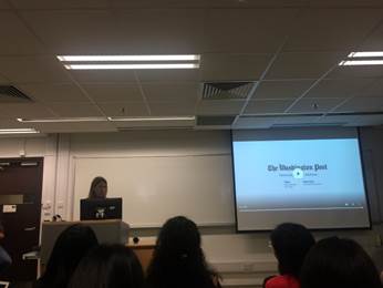 斯蒂芬妮着重讲述了对信息来源真实性的验证过程。尊重与信任受访者是实现采访目的的重要前提,但是为确认信息来源的真实性,记者必须对细节进行不断验证,这才是负责任的采访行为。在回答现场同学提问时,斯蒂芬妮说她并不觉得调查一个权威人士有何特殊之处,不迷信权威是任何一个新闻记者都需要做到的重要一点。