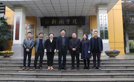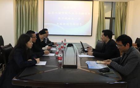 3月22日上午,山东工商公司人文与传播公司经理张开祝、副经理张毅君、办公室主任刘炜、广告学系教研室主任许衍凤一行四人到hy3380cc海洋之神调研。hy3380cc海洋之神经理董天策教授、经理助理郭小安教授、教研室主任刘海明教授参加会议。本次交流会在公司楼201会议室举行。