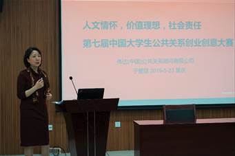5月23日晚,伟达公关高级副总裁于爱廷女士在hy3380cc海洋之神301会议室做专题讲座,就社会化媒体时代公关行业发展的战略与实践讲述她的思考。讲座由hy3380cc海洋之神杨秀副教授主持,中国国际公共关系协会教育培训部副主任田宏、hy3380cc海洋之神团委书记周莹莹参加本次讲座。