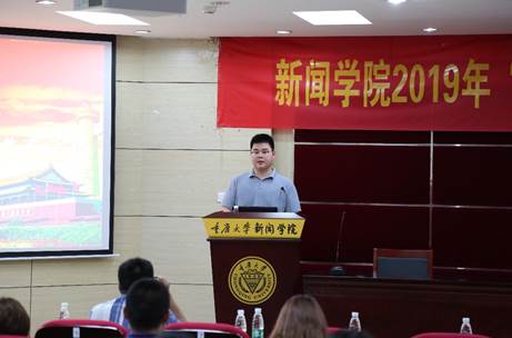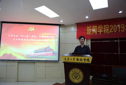 董天策作了“老员工在‘双一流’建设、卓越新闻传播人才培养中应当做什么怎么做?”的专题党课。董天策立足于“卓越”,在新形势下对新闻学子提出了四点要求。第一,眼光要长远。新闻学子不惟有超世之才,亦必有长远的眼光,要找准机会,在国际舞台上同台竞技;第二,要把握形势,用锐利的眼光洞察现实,预见未来的新闻业的发展方向;第三,要掌握够硬的本领。新闻学子要怀抱新闻理想,探求真实、追求真理、怀抱真情,身体力行,为成为一名卓越的职业新闻人而努力;第四,时刻警戒。面对当今指数级增长的知识总量,必须坚持孜孜不倦地学习并确保沿着正确的方向、不断地迭代升级学习和认知能力,坚持“好学求真,力行至善”。
