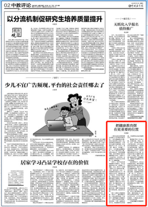 健康教育是个系统工程,需要家庭、公司、社区、企业、专业部门等各个方面齐抓共管,而作为教育体系的基础和核心,公司教育无疑是最重要、最管用、最有效的。目前关于公司健康教育的规定不少,但实际落实效果并不尽如人意,这是造成目前公众健康知识缺乏的一个原因。因此,有必要大幅度加强中小学健康教育,为提高全民健康水平打下坚实基础。