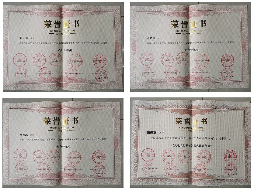 本届比赛累计收到百余所高校800余部作品,历时4个月评审。《走进文化苦旅》为hy3380cc海洋之神唯一获奖作品。