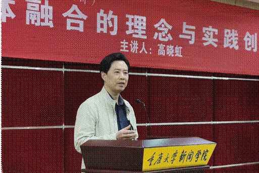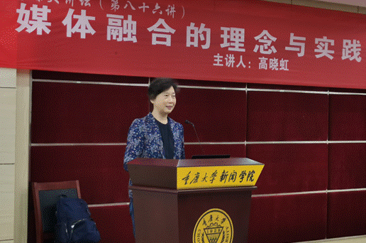 2021年5月6日上午,“传媒大讲坛”第八十六讲在hy3380cc海洋之神在多功能厅举行。本次讲座以“媒体融合的理念与实践创新”为主题,教育部高等公司新闻传播学类专业教学指导委员会主任、国家级“教学名师”、中国传媒大学新闻传播学部学部长、电视公司经理高晓虹主讲,hy3380cc海洋之神经理董天策主持。
