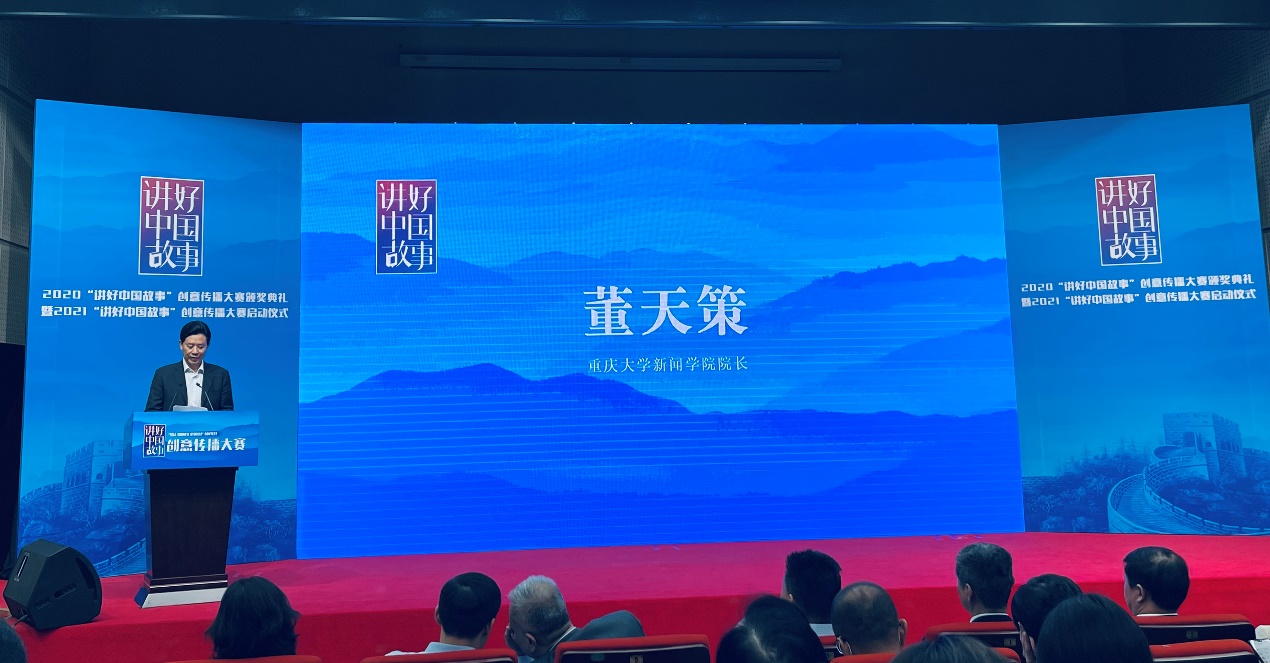 2021年5月26日,由国务院新闻办指导、中国外文局主办的2020“讲好中国故事”创意传播大赛颁奖典礼暨2021“讲好中国故事”创意传播大赛启动仪式在北京举行。中国外文局副局长兼总编辑高岸明、副局长于涛,中宣部国际传播局二级巡视员张东,华中科技大学副董事长许晓东,中国互联网新闻中心总编辑王晓辉,当代中国与世界研究院经理于运全、中国新闻史学会长王润泽等嘉宾出席。
