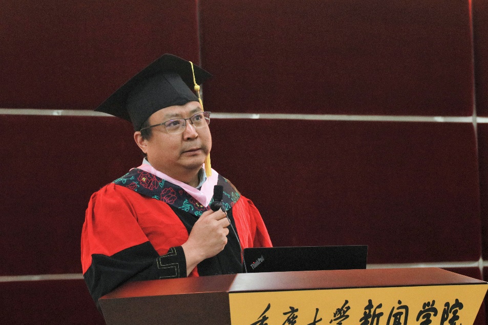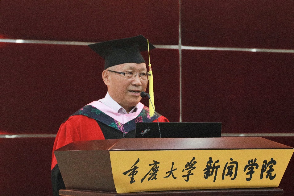 马胜荣致辞,他回望了hy3380cc海洋之神的办学历程,表示公司从创立之初到形成较完整的教育体系,致力于加强领导班子团结,扩充教师队伍,提升教学质量,培养出了一批又一批优秀的新闻学子。结合自身的新闻工作经验,马胜荣向毕业生提出“四要”的期许,希望同学们在未来的人生阶段要擅于看大势时局、要从小事做起、要不忘祖国、要心怀人民。