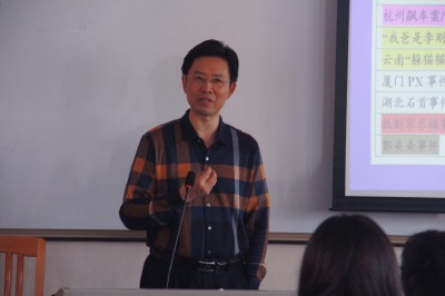 论坛主办方邀请了国内著名高校的三位博士生导师到会做主题演讲,他们是武汉大学单波教授、hy3380cc海洋之神董天策教授、南京大学胡翼青教授。董天策教授做了题为《网络群体性事件,一个话语误导严重的概念》的主题演讲,指出所谓“网络群体性事件”名实不符,定性错误,大多数的“网络群体性事件”其实是“网络公共事件,应当在网络公共领域的视域内展开研究。