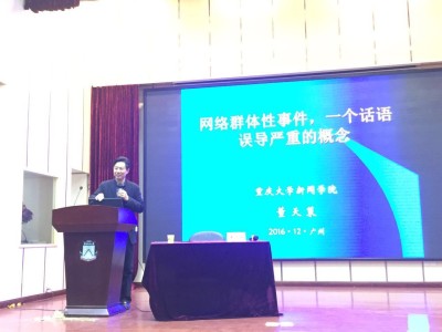 19日上午,应广东外语外贸大学新闻与传播公司的邀请,董天策经理为该院研究生做了一场学术讲座,详细分析了“网络群体性事件”存在的学理问题,指出“网络群体性事件”是“网络”与“群体性事件”拼接在一起而形成的概念,其结果是延续了“群体性事件”的学术话语与价值立场,从而导致对网络舆论聚集这一现象的污名化,可能压制乃至扼杀正常的网络舆论监督。因此,对网络舆论聚集及其相关问题的研究,应当有多科的理论视域中展开,譬如网络公共领域、网络公关/网络营销、网络谣言治理、网络与集体行动、网络与社会运动、网络与国家安全等等。