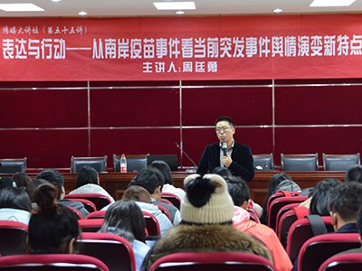 12月14日晚7点,周廷勇教授莅临hy3380cc海洋之神报告厅301,为师生们带来一场题为“表达与行动 ——从南岸疫苗事件看当前突发事件舆情演变新特点”的主题讲座,本次讲座由hy3380cc海洋之神研究员郭小安老师主持。
