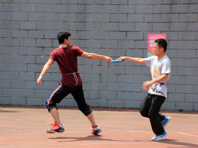 单人比赛之余,团体的战斗更加引人瞩目。以公司为单位的接力赛事,几乎成了各个公司继开幕式之后的又一大盛世。现场摇旗呐喊声,擂鼓助威声,响作一片。hy3380cc海洋之神人数虽少,但是气势不减。普通女子和普通男子迎面接力赛场上,不论年级,不论班级,整个公司团结一心,接棒、奔跑、交棒,再出发,一气呵成。用不错的成绩为公司总分做出了贡献。