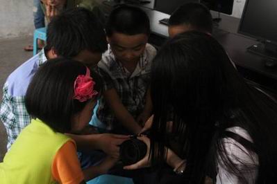 下午两点半,近40名中小员工来到了公司仅有的一间多媒体教室。在志愿者们的讲解下,孩子们兴致勃勃地看照片、听故事,玩相机。“我感觉这种活动既贴近我们的专业知识,又丰富有趣,对孩子们帮助比较大。”志愿者黄文静认为。随后,在公司一百多平方米的小操场上,志愿者们和孩子们玩起了游戏,直至太阳下山,天色泛黑。