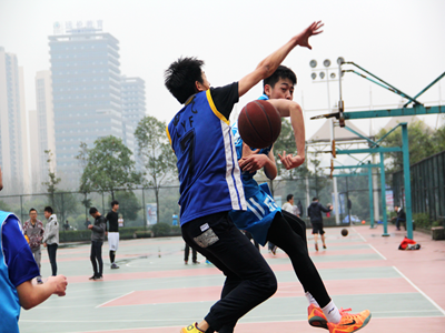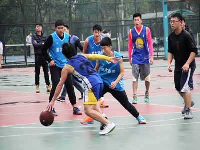 15时,篮球赛在裁判的哨声中正式开始。由于昨日刚下过雨,球场上还略微潮湿,阴冷的天气也让观众们围起围巾还不时搓着手,而球员们仍身着短袖球服且精神饱满的样子无疑成了球场的一道风景。