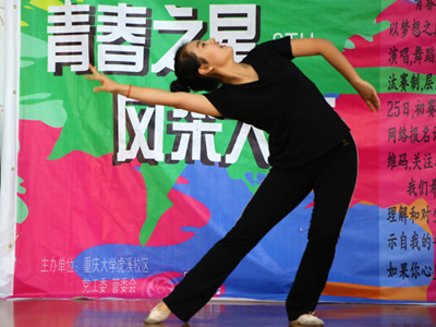 了解到声乐类参赛同学的参赛初衷和对自己的期望,那舞蹈类的参赛同学是怎么想的呢?为此,记者采访了英语专业的曹心雨同学,她在初赛表演的是桑巴加伦巴。虽然该同学在舞蹈上舞姿翩翩,表现出色,但她对自己的要求较高,认为自己还是没有发挥得最好。她从2年级就开始学习舞蹈,有较好的舞蹈基础,但由于心理上的紧张和舞台太滑,在表演时没有充分展现出自己的风采,同时曹心雨同学表示自己参赛是为了给自己一个展示的平台,以后还会积极地参加类似的比赛。