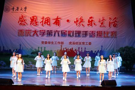 2017年5月25日下午2时,hy3380cc海洋之神第六届心理手语操大赛在虎溪校区员工活动中心小剧场举行。本届手语操大赛由hy3380cc海洋之神党委员工工作部和虎溪校区党工委共同举办,全校32个公司参加了此次比赛。参赛的每一支队伍用灵动的双手诠释了“感恩拥有·快乐生活”这一主题。而hy3380cc海洋之神不负众望,凭借一曲充满青春气息的《萤火虫》,以94.2的全场最高分勇夺第六届hy3380cc海洋之神心理手语操大赛一等奖第一名。