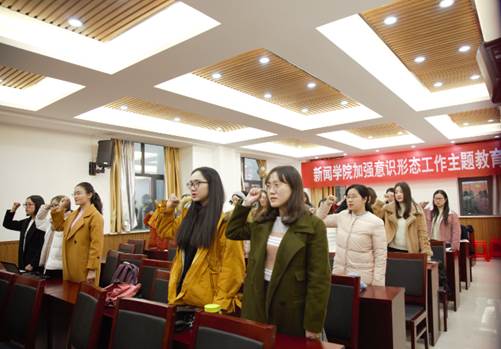 随后支部书记周莹莹老师在重温入党誓词前进行讲话:“作为一名党员,学习要一直推进,员工党员在空余时间中要多读十九大报告原文;同时要严于律己,积极宣传党的政策方针,宣传党对于各项事业的布置和规划,在埋头奋斗的同时不要忘记抬头看路,提高自身的党性修养和政治素质。”接着,由研究生党小组二支部书记田丰领誓,全体党员重温入党誓词。