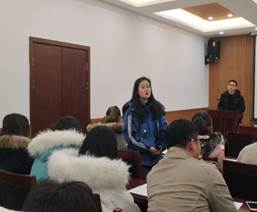 会议由研究生党小组二支部书记田丰主持,首先向全体参会人员介绍本次会议议题,其次则对谢玉佳同志的转正情况进行讲述:“谢玉佳同志于2015年12月14日成为预备党员,至今预备期已满,并于2017年12月14日由本人提出转正申请。”