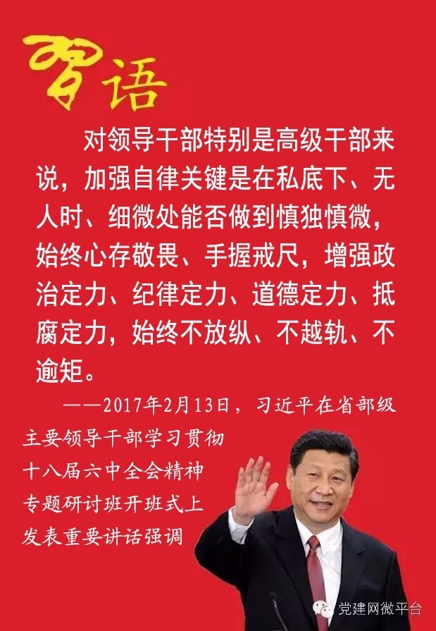——2017年2月13日,习近平在省部级主要领导干部学习贯彻十八届六中全会精神专题研讨班开班式上发表重要讲话强调
