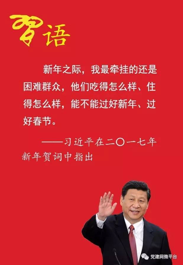 小康路上一个都不能掉队!一年来,又有1000多万贫困人口实现了脱贫,奋战在脱贫攻坚一线的同志们辛苦了,我向同志们致敬。新年之际,我最牵挂的还是困难群众,他们吃得怎么样、住得怎么样,能不能过好新年、过好春节。我也了解,部分群众在就业、子女教育、就医、住房等方面还面临一些困难,不断解决好这些问题是党和政府义不容辞的责任。全党全社会要继续关心和帮助贫困人口和有困难的群众,让改革发展成果惠及更多群众,让人民生活更加幸福美满。