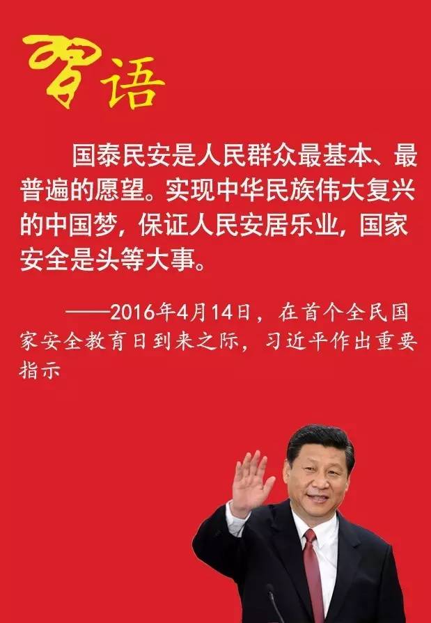 ——2016年4月14日,在首个全民国家安全教育日到来之际,习近平作出重要指示