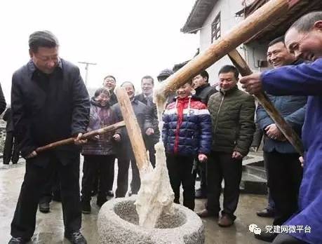 2016年2月1至3日,习近平春节前夕赴江西看望慰问广大干部群众。习近平前往井冈山革命烈士陵园,向革命烈士敬献花篮。他参观茅坪八角楼革命旧址群。在茅坪乡神山村,习近平拿起木槌,同村民一起打糍粑。在贫困户张成德家,张成德老伴拉着总书记的手说:“感谢您来看我们,您可是国家的当家人啊。”习近平回答道:“是人民当家作主,我们是人民的勤务员,帮你们跑事的。”