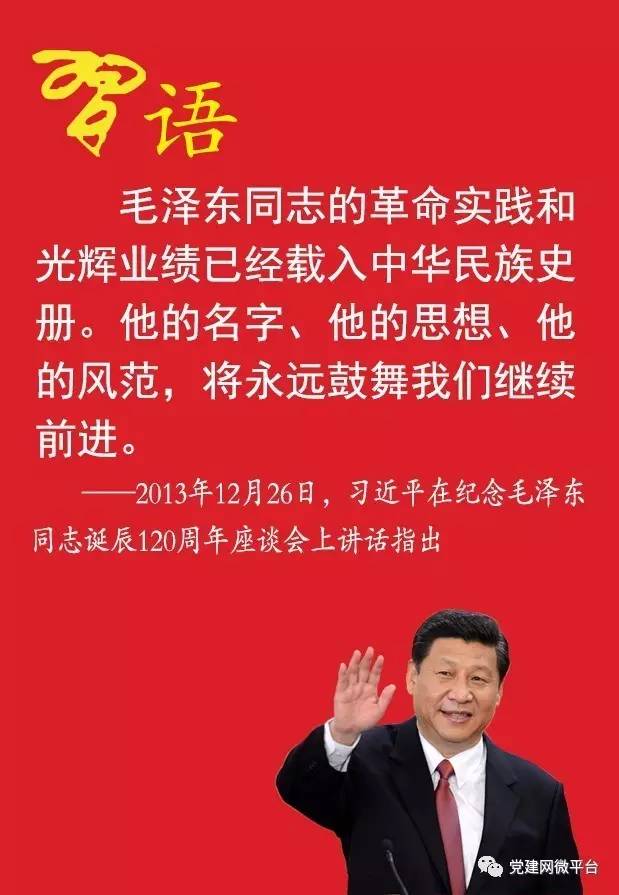 习近平同志担任总书记以来,在各种场合多次要求我们学习毛泽东同志等老一辈革命家的高尚品格,还时常引用毛泽东的名言、诗词、典故。今天,党建网微平台带您跟随习近平总书记的脚步,一同纪念一代伟人毛泽东。
