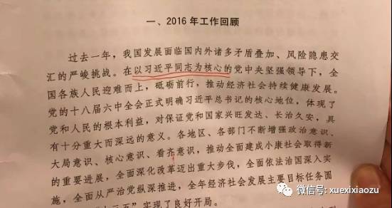 报告在开篇指出:过去一年,我国发展面临国内外诸多矛盾叠加、风险隐患交汇的严峻挑战。在以习近平同志为核心的党中央坚强领导下,全国各族人民迎难而上,砥砺前行,推动经济社会持续健康发展。党的十八届六中全会正式明确习近平总书记的核心地位,体现了党和人民的根本利益,对保证党和国家兴旺发达、长治久安,具有十分重大而深远的意义。