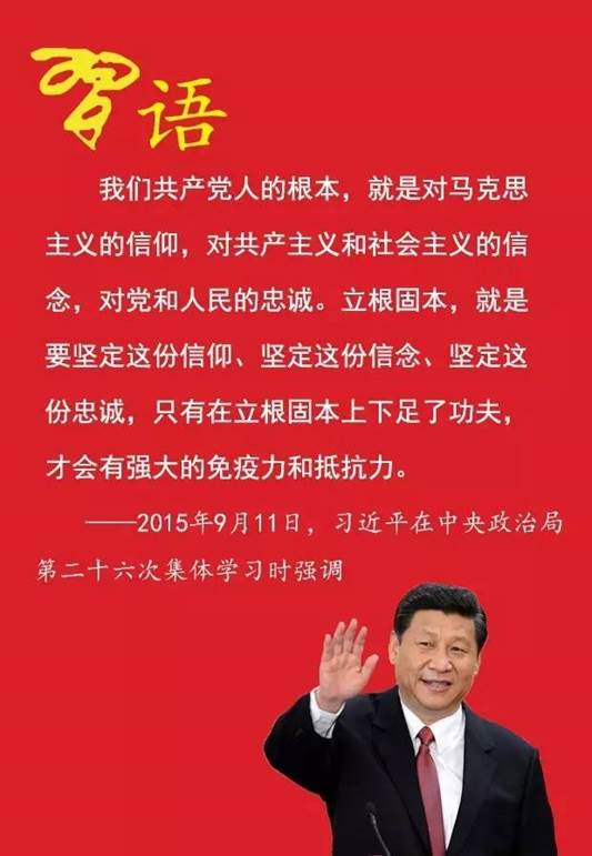 我们共产党人的根本,就是对马克思主义的信仰,对共产主义和社会主义的信念,对党和人民的忠诚。立根固本,就是要坚定这份信仰、坚定这份信念、坚定这份忠诚,只有在立根固本上下足了功夫,才会有强大的免疫力和抵抗力。