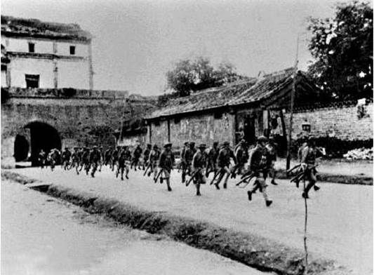 图为驻守在宛平城的宋哲元部第29军紧急赴战。
