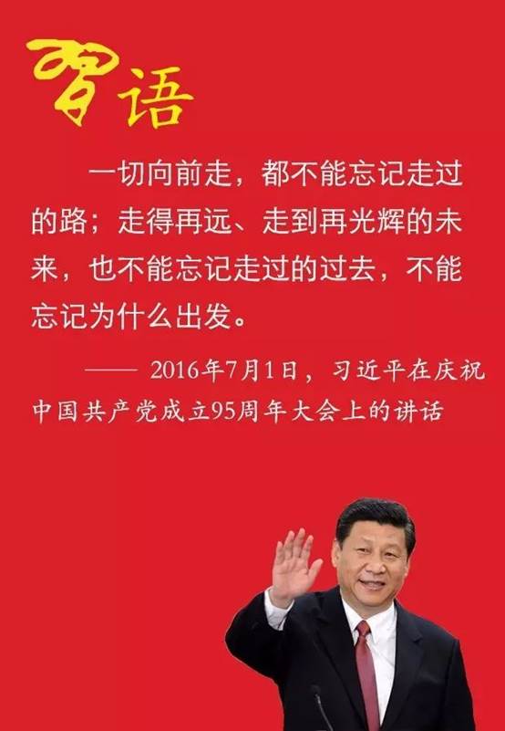 2016年7月1日,习近平在庆祝中国共产党成立95周年大会上强调,“历史从不等待一切犹豫者、观望者、懈怠者、软弱者。只有与历史同步伐、与时代共命运的人,才能赢得光明的未来。”
