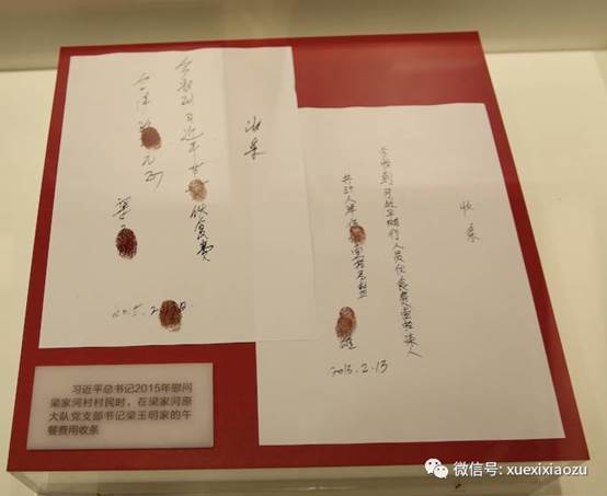 习近平2015年慰问梁家河村村民时,在梁家河原大队党支书梁玉明家的午餐费用收条