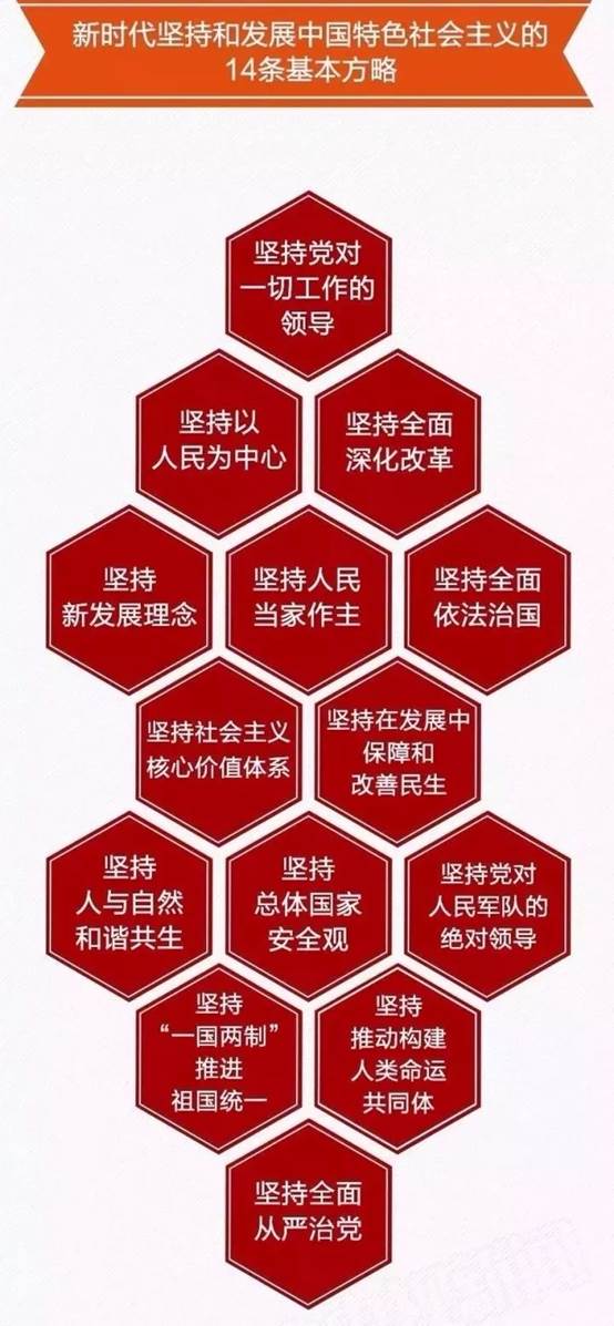 10月24日,党的十九大通过了关于《中国共产党章程(修正案)》的决议。习近平新时代中国特色社会主义思想写入党章,确立为党的行动指南。这一思想内涵丰富,包含8个“明确”和14个“坚持”,党建网微平台和您一起深入了解!