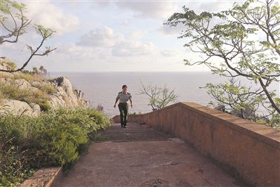 通往灯塔的这段台阶,是王继才和王仕花走得最熟的路。一走,就是32年。图为王继才牺牲后,王仕花继续巡岛。记者 张 雷摄