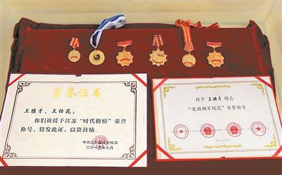 王继才夫妇守岛爱国的事迹令人感动,近年来先后获得“时代楷模”、全国“爱国拥军模范”等荣誉。可是,夫妻俩从不主动向别人展示荣誉,而是把所有的奖章和证书收藏起来。王继才生前曾说,荣誉看多了,眼会花、心会浮。他去世后,家人将这些荣誉证书和奖章捐献给了连云港革命纪念馆。