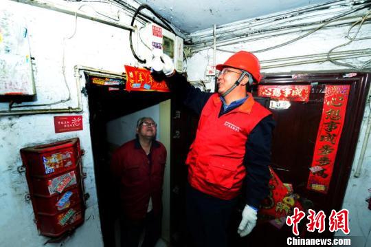 图为张黎明为社区居民用电排除故障隐患。(国网天津市电力公司提供资料图) 钟欣 摄