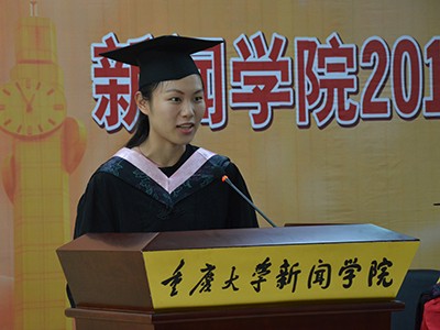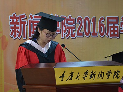 毕业生代表,2016届本科新闻专业二班万凌云在典礼上发言。万凌云同学首先表达了对公司老师和父母的感谢,细数了在重大四年的所思所感。万凌云希望大家以重大人为骄傲,走出校门后依然保持学习的热情和理想的坚定。