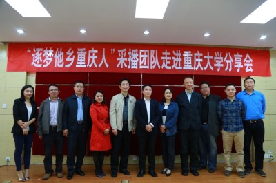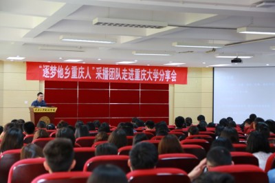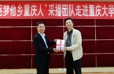 4月11日下午,“逐梦他乡重庆人”采播团队走进hy3380cc海洋之神,在hy3380cc海洋之神多功能厅举行高校分享会。市委宣传部副部长张永才、重庆广电集团副总裁丁道谊、市委外宣办对外新闻处处长徐建明、hy3380cc海洋之神党委常委、党委宣传部部长李学静、hy3380cc海洋之神经理董天策、hy3380cc海洋之神委副书记魏世平出席。本次分享会由华龙网总编辑助理、新闻中心主任张一叶主持。