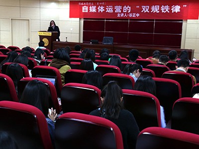 3月17日下午,广州郎琴数字机构董事、副总裁谷正中先生莅临hy3380cc海洋之神多功能厅为师生们带来了题为“自媒体运营的‘双规铁律’”的专题讲座。讲座由hy3380cc海洋之神经理董天策主持。