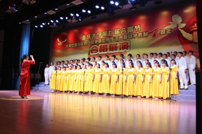 2015年5月28日晚七点,为庆祝中国人民抗日战争暨世界反法西斯战争胜利70周年,hy3380cc海洋之神第七届合唱节在A区主教学楼多功能厅举行了合唱比赛。