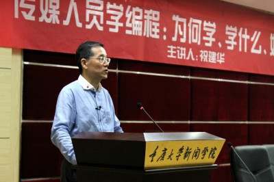 5月15日,香港城市大学祝建华教授莅临hy3380cc海洋之神展开了一场题为“传媒人员学编程:为何学、学什么、如何学?”的讲座。hy3380cc海洋之神研究员郭小安主持了此次讲座。