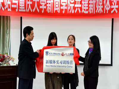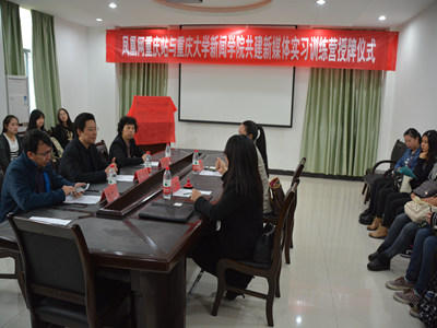 (经理董天策和副总编辑曾秋云为共建新媒体实习训练营揭牌)