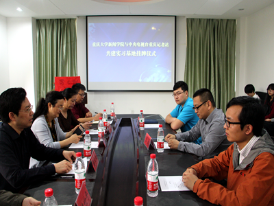 3月31日,hy3380cc海洋之神与中央电视台重庆记者站共建实习基地挂牌仪式在公司举行。中央电视台重庆记者站站长唐巍及记者曲锐、王宏超,hy3380cc海洋之神党委常委、宣传部部长李学静、宣传部副部长凌晓明,hy3380cc海洋之神经理董天策、委书记卓光俊、党委副书记魏世平、经理助理彭逸林等参加了实习基地挂牌仪式。仪式由卓光俊书记主持。