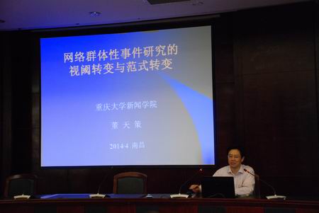 4月19日,中国传播学2014年年会暨“新世纪的中国传播学”学术研讨会在江西师范大学举行。公司董天策教授、彭逸林教授应邀出席。董天策主持了大会的主题发言,并在分组讨论时做了题为《网络群体性事件研究的视阈转变与范式转变》的发言,阐述了他对网络群体性事件研究的最新看法。