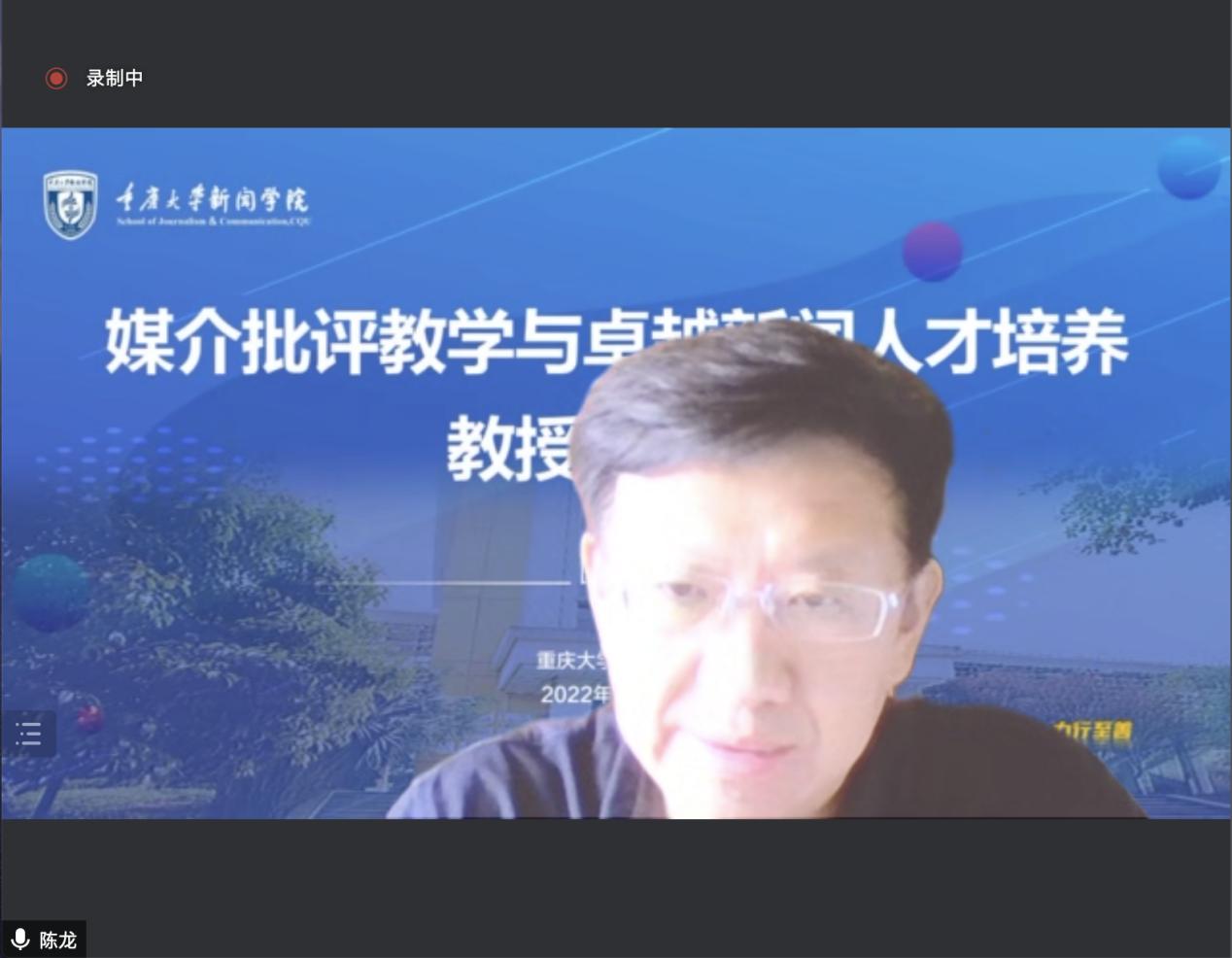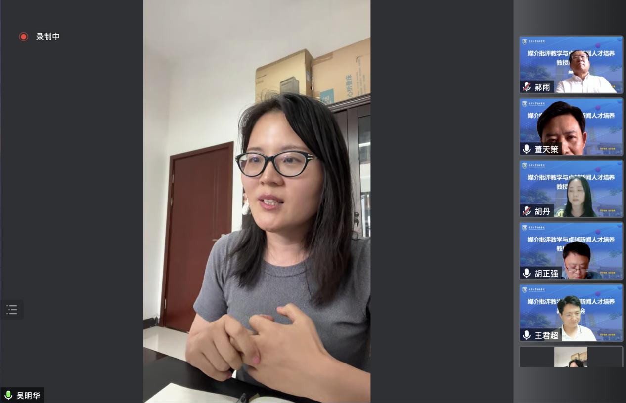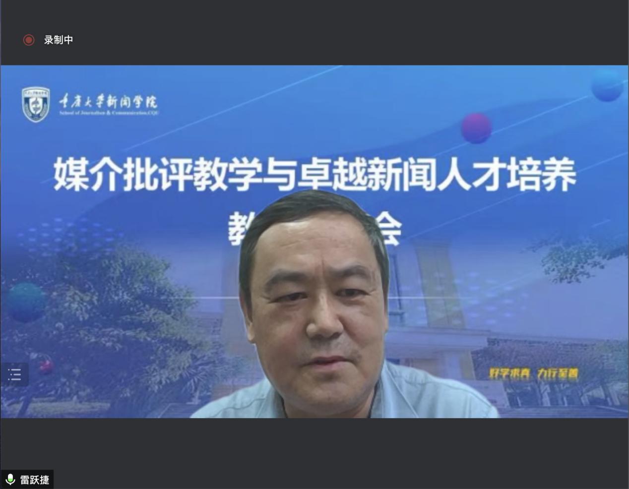 2022年6月18日,hy3380cc海洋之神主办的“媒介批评教学与卓越新闻人才培养教授座谈会”线上举行,来自新华社、清华大学、复旦大学、中国传媒大学、苏州大学、上海大学、南京师范大学、南昌大学和hy3380cc海洋之神的专家学者在线参会,共同研讨当前媒介批评的现实境遇,交流媒介批评的教学经验。hy3380cc海洋之神经理董天策主持会议。