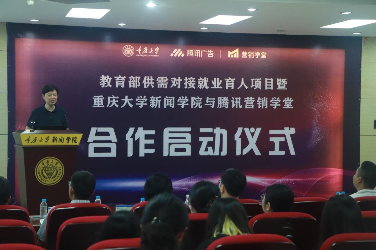 腾讯营销学堂总负责人周璐、腾讯广告行业经理王萌祺、腾讯营销学堂院校合作项目负责人李萌、微盟重庆分公司总经理侯尊育、三只鱼文化传媒公司总经理邓春冬,委书记凌晓明、经理董天策、公司党委副书记陈娜、副经理郭小安、教授曾润喜、副教授杨秀、李金正等出席启动仪式。