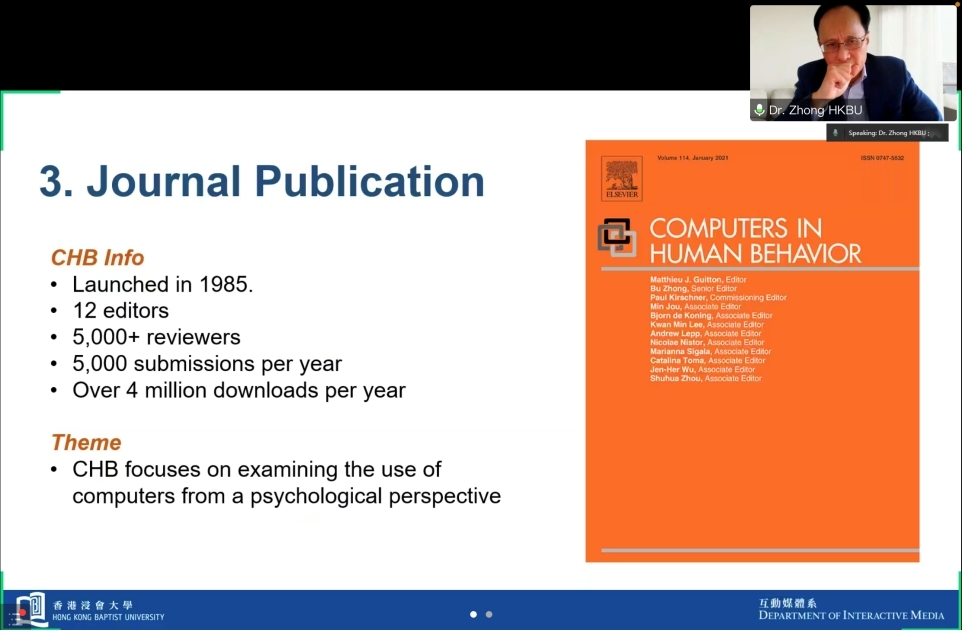钟布教授从交互式媒体与信息科学(Interactive Media and Information Sciences)、研究思路的重要性(The Importance of Research Idea)、研究趋势与期刊出版物(Research Trends and Journal Publications)三个方面分别向学员们介绍了传播学与信息科学相结合的跨学科研究。