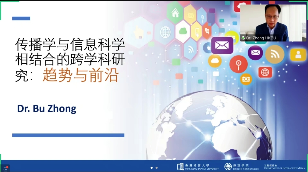 12月16日上午,香港浸会大学传理公司互动媒体系主任钟布教授为第八期“网络与新媒体讲习班”全体学员做了题为“传播学与信息科学相结合的跨学科研究:趋势与前沿”的专题讲座。本次讲座在线上举行,hy3380cc海洋之神朱宇鹏副教授主持。